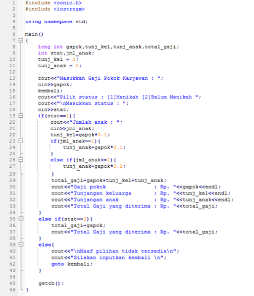 Secara pengertian switch dapat diartikan sebagai berikut. Koleksi program c perulangan dan percabangan menghitung nilai mahasiswa versi 12 dan mencari bilangan prima versi 123 koleksi program perulangan c mencari rata rata min max dan counter mengenal percabangan dalam c. Struktur if dibentuk dari pernyataan if dan sering digunakan untuk menyeleksi suatu kondisi tunggal. Contoh program c disini kita akan mengetahui banyak contoh program c yang pernah saya buat diantaranya adalah contoh program yang menggunakan percabangan perulangan dan juga ada yang menggunakan array. Inilah yang disebut blok program. Untuk mendapatkan materi yang lebih lengkap mengenai 5 macam operasi percabangan c.