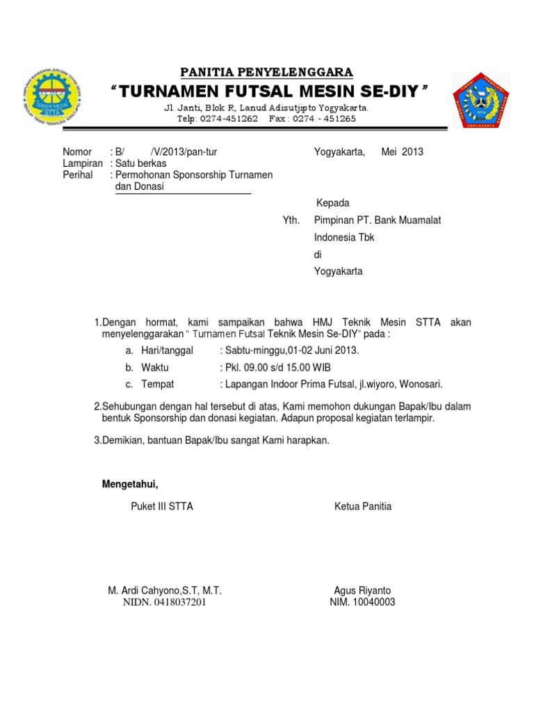 Sumber dan anggaran ini meliputi kas organisasi donator dan sponsor. Contoh proposal permohonan bantuan dana sponsor kamis 17 oktober 2013 nomor. Doc proposal permohonan bantuan dana bayu ardianto. Sebuah proposal biasanya terdiri dari pendahuluan tujuan peserta waktu dan tempat susunan kepanitiaan anggaran dana dan penutup. Dalam kaitannya dengan hal tersebut maka dipandang perlu diadakan sebuah kegiatan yang akan menggairahkan membina mengembangkan rasa persahabatan persaudaraan dan persatuan diantara peserta sehingga kami sebagai pengurus karang taruna mempunyai inisiatif untuk membuat melaksanakan salah satu program kerja melalui sebuah kegitan kompetisi olahraga. Academiaedu is a platform for academics to share research papers.
