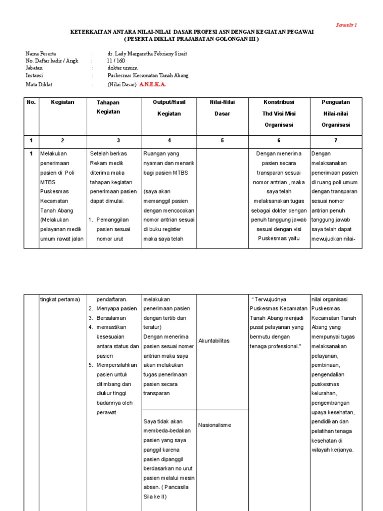 Laporan Aktualisasi Nilai Nilai Dasar Profesi Pns Aneka
