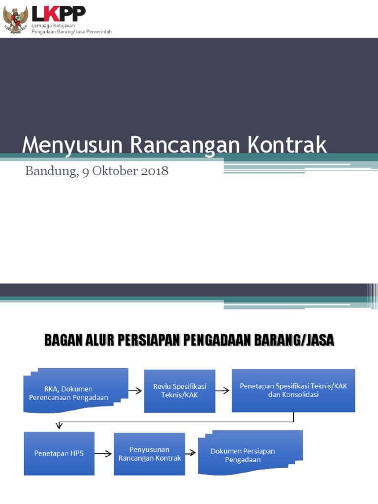 021 2991 2450 ext 0944 atau ext 0945 selengkapnya. Membuat rancangan kontrak pengadaan barangjasa yang meliputi tahapan penyusunan kontrak rumusan klausul kontrak ketentuan penyusunan kontrak peran dan tanggung jawab prosedur penyusunan kontrak format dokumentasi rancangan kontrak dan prosedur dokumentasi rancangan kontrak m e n y u s u n r a n c a n g a n k o n t r a k p b j. Peraturan kepala lkpp nomor 17 tahun 2012 tentang e purchasing dengan ini disampaikan hal hal sebagai berikut. Pada dasarnya ringkasan rancangan pengambilalihan ini disusun guna memenuhi ketentuan pasal 127 ayat 2 undang undang no. Dalam bentuk pasal dan ayat 2.