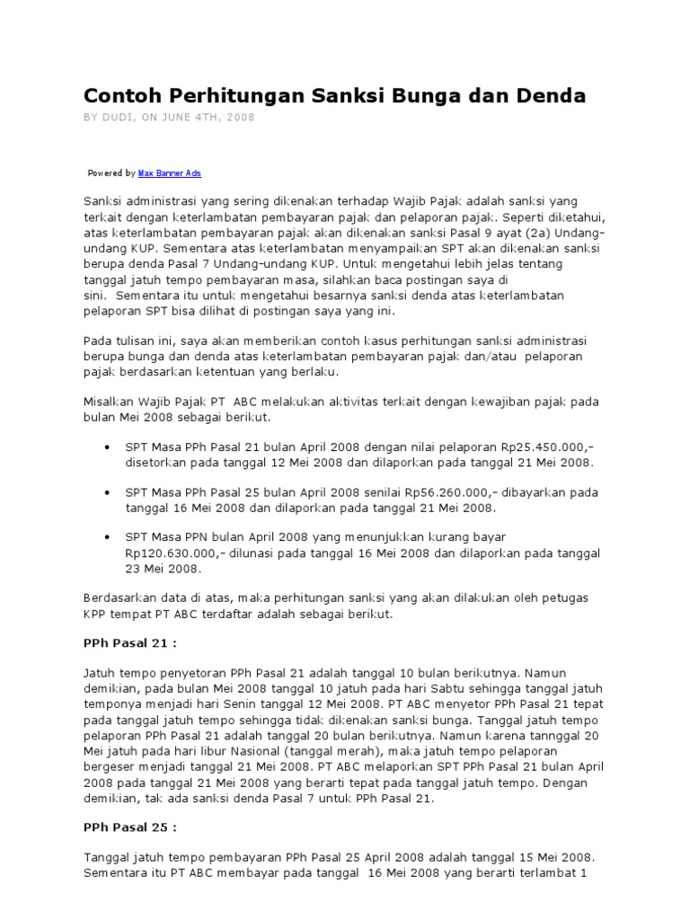 Contoh rangkuman tentang pph pasal 25. Dalam pasal 25 undang undang nomor 7 tahun 1983 tentang pph sebagaimana telah beberapa kali diubah terakhir dengan undang undang nomor 36 tahun 2008 uu pph dijelaskan bahwa pembayaran pajak bisa diangsur atau dicicil di muka dengan pembayaran cicilan setiap bulan. Pembayaran ini harus dilakukan sendiri dan tidak bisa diwakilkan. Tujuannya adalah untuk meringankan beban wajib pajak mengingat pajak yang terutang harus dilunasi dalam waktu satu tahun. Menurut uu undang undang no. 36 tahun pajak 2008 pajak penghasilan pasal 29 adalah pph kurang bayar kb yang tercantum dalam spt tahunan pph yaitu sisa dari pph yang terhutang dalam satu tahun pajak yang bersangkutan dan telah dikurangi dengan kredit pajak pph 21 pph 23 pph 22 dan angsuran pph pasal 25 jika ada. Pajak penghasilan pasal 25 pph pasal 25 adalah pajak yang dibayar secara angsuran.