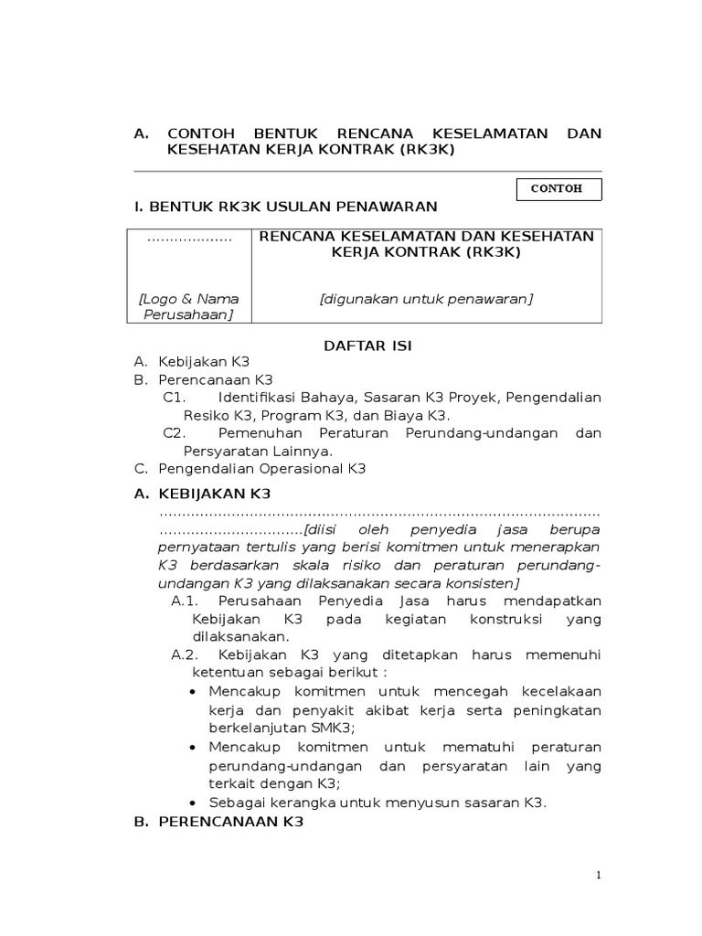 Rencana keselamatan dan kesehatan kerja kontrak 2 rencana k3 kontrak rk3k rk3k adalah dokumen lengkap rencana penyelenggaraan smk3 konstruksi bidang pu dan merupakan satu kesatuan dengan dokumen kontrak suatu pekerjaan konstruksi yang dibuat oleh. Disusun oleh civiltekno. Rkk tersebut dalam dokumen pemilihanlelang adalah rencana keselamatan konstruksi yang mana didalam nya termuat isi. Kepada rekan rekan sekalian silahkan download contoh format rkk yang telah disi form nya mohon untuk bisa diimprove kembali terhadap kecocokan. Penerapan sistem manajemen keselamatan konstruksi smkk 32 b. Rencana keselamatan konstruksi rkkdocx size.