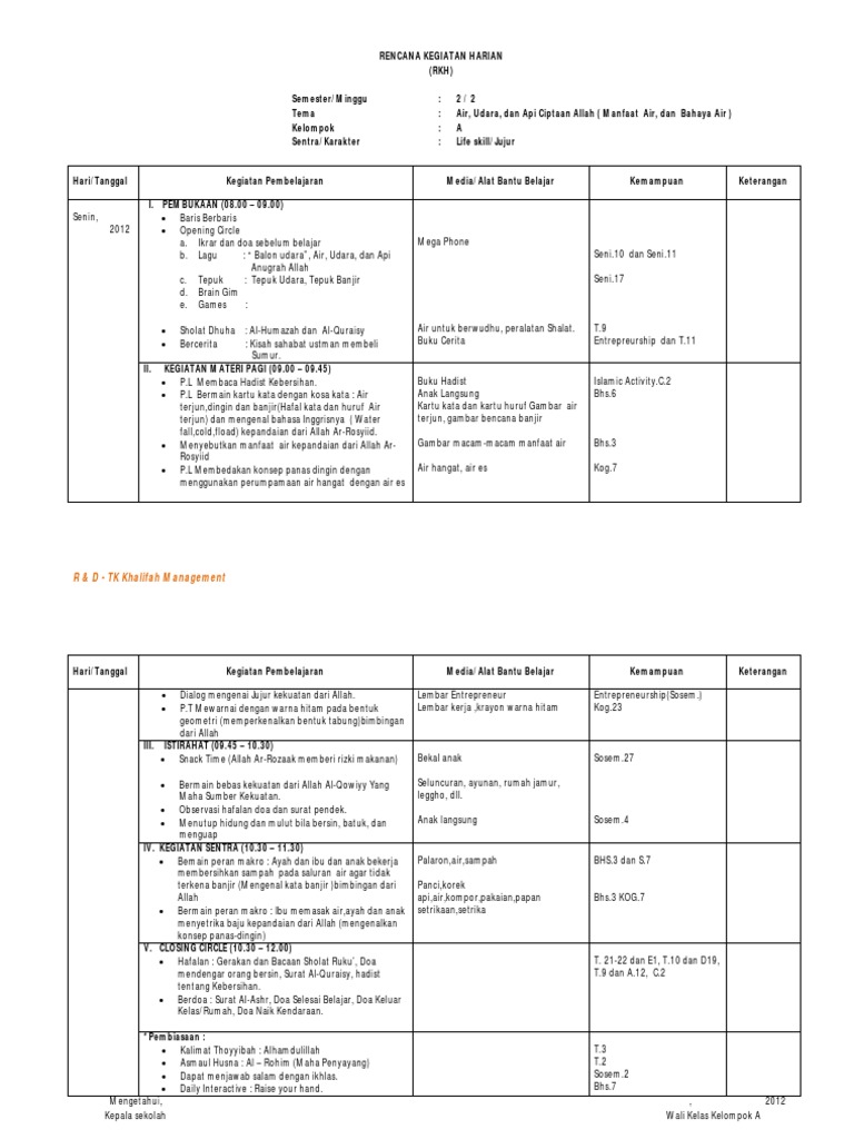 Contoh rkh paud semester 2. Rpph tk b semester 2 rkh tk kelompok b semester 2 untuk minggu ke 1 sampai 8 sesuai kurikulum 2013 paud bisa ayah bunda dapatkan secara gratis melalui halaman ini. Berkas paud rkhrpph paud semester 2 tema air api dan udara menjelang semester 2 pembelajaran jenjang anak usia dini tk paud ra kb tpa mari kita persiapkan segala sesuatunya mulai dari promes program semster rkmrppm rencana kegiatan pembelajaran mingguan dan rkhrpph rencana kegiatan pembelajaran mingguan yang sesuai dengan kurikulum nasional yang diberlakukan pada tahun. Contoh rpph tk a semester 2 minggu 12345678 download rkh tk kelompok a paud jateng. Supaya mengenal rpph paud secara detil dan lengkap disini penulis sertakan link download contoh rpph lengkap dan sengaja penulis pisahkan berdasarkan tema berdasarkan usia untuk semester 1 dan semester 2. Jadi rppm rencana pelaksanaan pembelajaran mingguan untuk tk b kelompok usia 5 6 tahun selama 1 tahun full yang terdiri semester 1 dan semester 2 sudah kami berikan semua. Rencana kegiatan harian tk a usia 4 5 tahun semester 2 gratis.