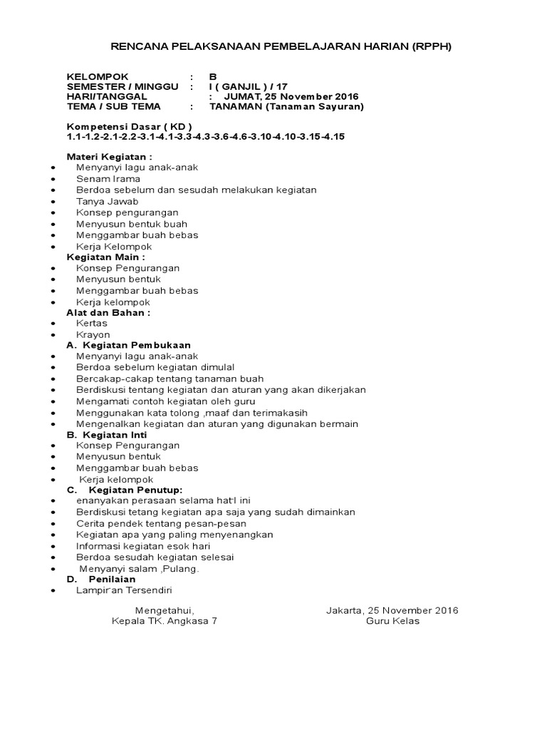 Contoh Rpph Paud Kurikulum 2013 Berkas Edukasi