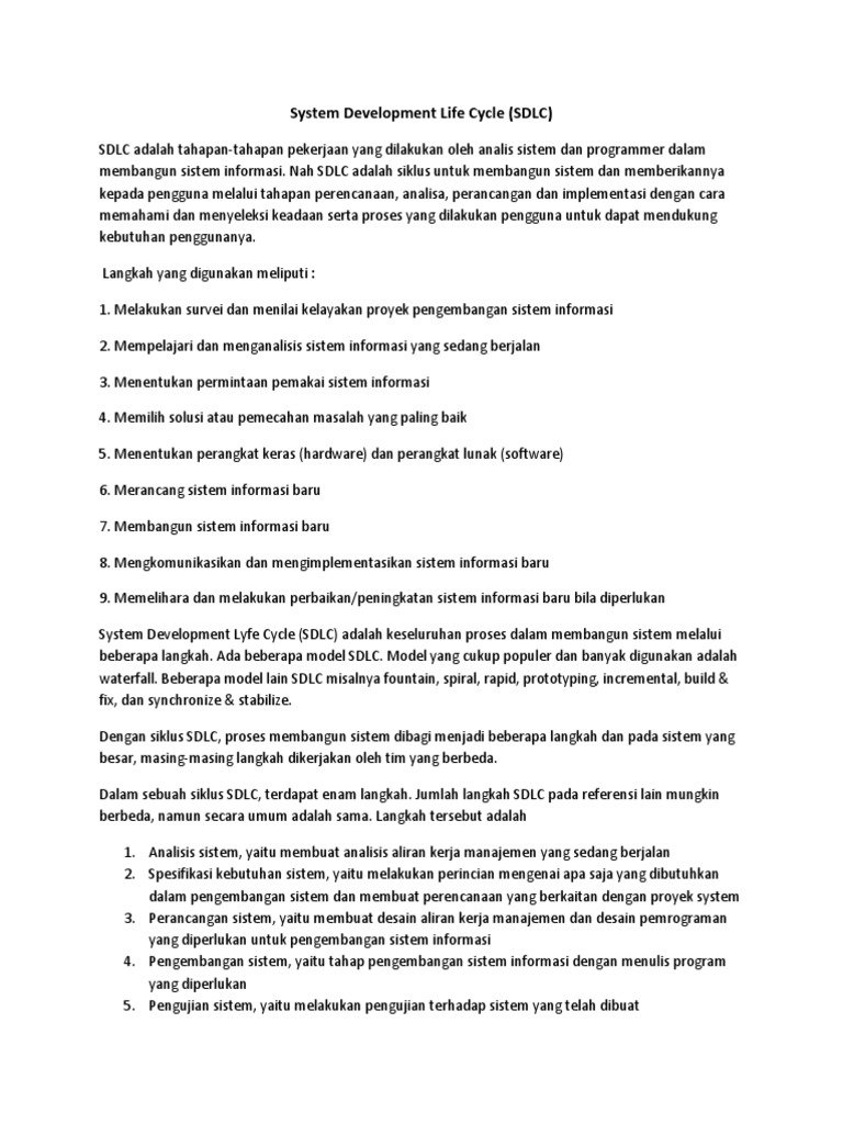 Sdlc atau software development life cycle atau sering disebut juga system development life cycle adalah proses mengembangkan atau mengubah suatu sistem perangkat lunak yang memakai metodologi yang dipakai oleh orang untuk mengembangkan sistem sistem perangkat lunak sebelumnya berdasarkan pengalaman terbaik atau cara cara yang sudah pasti terjamin sangat baik. Setelah mengetahui pengertian dari sistem informasi hal selanjutnya yang akan dibahas adalah contoh sistem informasi. Beberapa langkah dalam metode sdlc system development life cycle untuk membeli paket software antara lain. Model waterfall metode pengembangan sistem metode sdlcsistem development life cycle atau sering disebut sebagai pendekatan air terjun waterfallmetode waterfall pertama kali diperkenalkan oleh windows w. Pada software engineering sdlc merujuk pada suatu model dan metodology dalam membangun sebuah sistem komputer. Pengembangan sistem informasi dalam kurun waktu kini sungguh sangat pesat.