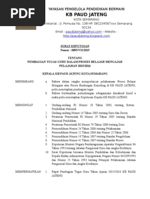 Contoh sk pengangkatan tenaga pendidik dan kependidikan paud. Contoh surat keputusan pembagian tugas mengajar ini merupakan keputusan kepala sekolah yang berisi tentang pernyataan penugasan kepada setiap guru untuk.