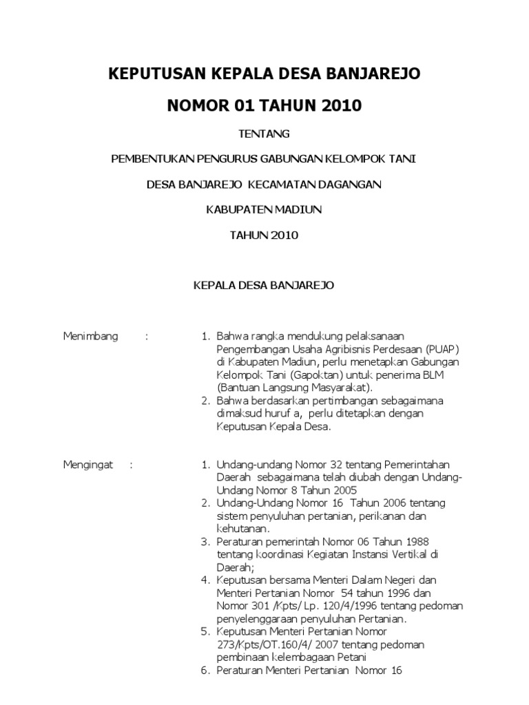 Surat keputusan kepala desa manduamas lama. Contoh sk kelompok tani dari kepala desa c. 520 kpts 16 2019 ten. Admin blog dapatkan contoh 2019 juga mengumpulkan gambar gambar lainnya terkait contoh sk kepala desa tentang kelompok tani dibawah ini. Sk penetapan pengurus kelompok tani maju bersama. Bahwa untuk kelancaran kelompok wanita tani sejahtera dipandang perlu diadakan penetapan pengurus kelompok wanita tani sejahtera.