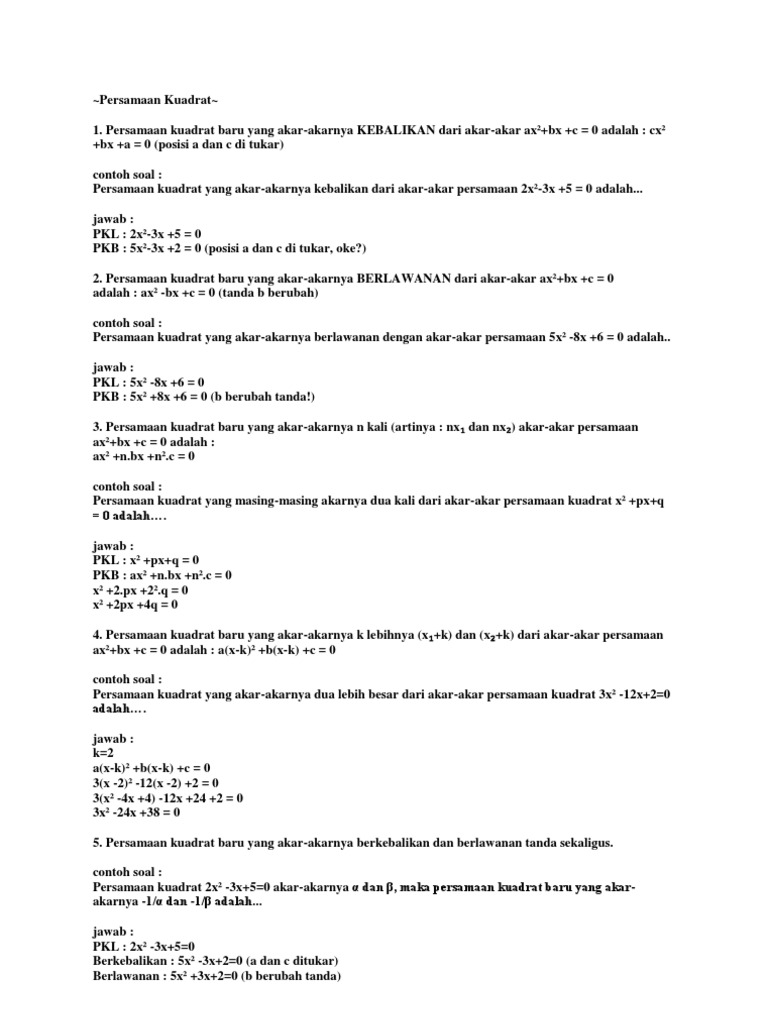 Jumlah kuadrat x 1 2 x 2 2 x 1 x 2 2 2x 1x 2. C 6 pembahasan. Ada baiknya sobat baca dulu materi persamaan kuadrat sebelum. Persamaan kuadrat yaitu merupakan suatu persamaan dari variabel yang mempunyai pangkat tertinggi dua. Sobat semua harus mulai mempersiapkan diri terutama buat yang duduk di sekolah menengah atas. Khusus mata ujian matematika ada baiknya banyak latihan soal.