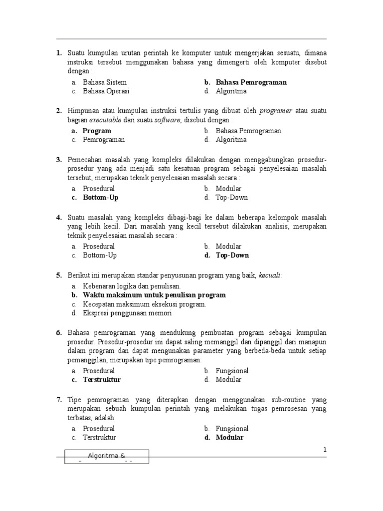 Apa definisi pseudo code dan contohnya. Jelaskan dengan contoh kasus algoritma yang memiliki struktur percabangan. Soal ujian utama algoritma dan pemrograman 2 gunadarma in soal ujian utama algoritma dan pemrograman 2 gunadarma soal ujian utama algoritma dan pemrograman 2 gunadarma 2017 soal ujian utama algoritma dan pemrograman 2 gunadarma 2018 by admin on april 01 2018. Apa definisi algoritma dan contohnya. Berikut ini kumpulan soal soal dasar algoritma dan pemrograman. Berikut informasi sepenuhnya tentang contoh soal algoritma pemrograman dan penyelesaiannya.