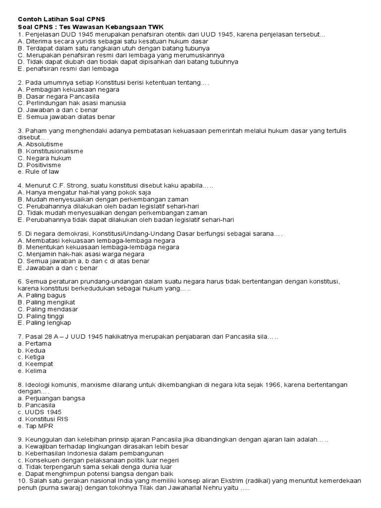 Contoh latihan soal pancasila twk cpns 2019 update saya bagikan semua yang saya miliki tentang soal cpns 2019 untuk anda secara gratis. Contoh soal skd cpns 2020 twk tiu dan tkp jawabanya saat ini pencarian contoh soal cpns 2020 pdf atau dalam bentuk lainnya banyak dicari. Contoh latihan soal tes wawasan kebangsaan twk pancasila. Contoh soal tes wawasan kebangsaan twk ini saya kumpulkan dari beberapa aplikasi simulasi cat cpns yang dilengkapi dengan jawabannya.