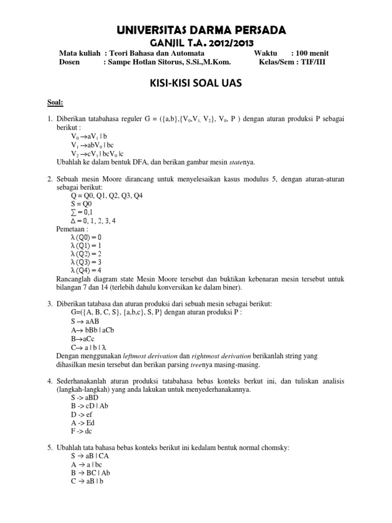 Inilah pembahasan lengkap terkait contoh soal dan jawaban teori bahasa dan automata. If 10c latihan soal teori dan bahasa automata pilihan ganda 1. Gambar kos 3d dengan opengl. Jawaban lengkap tebak gambar di android. Tata bahasa bebas konteks dan push down automata telah banyak memberikan bantuan pada spesifikasi dari bahasa pemrograman dan perancangan. Download materi mata kuliah aljabar linear elementer.