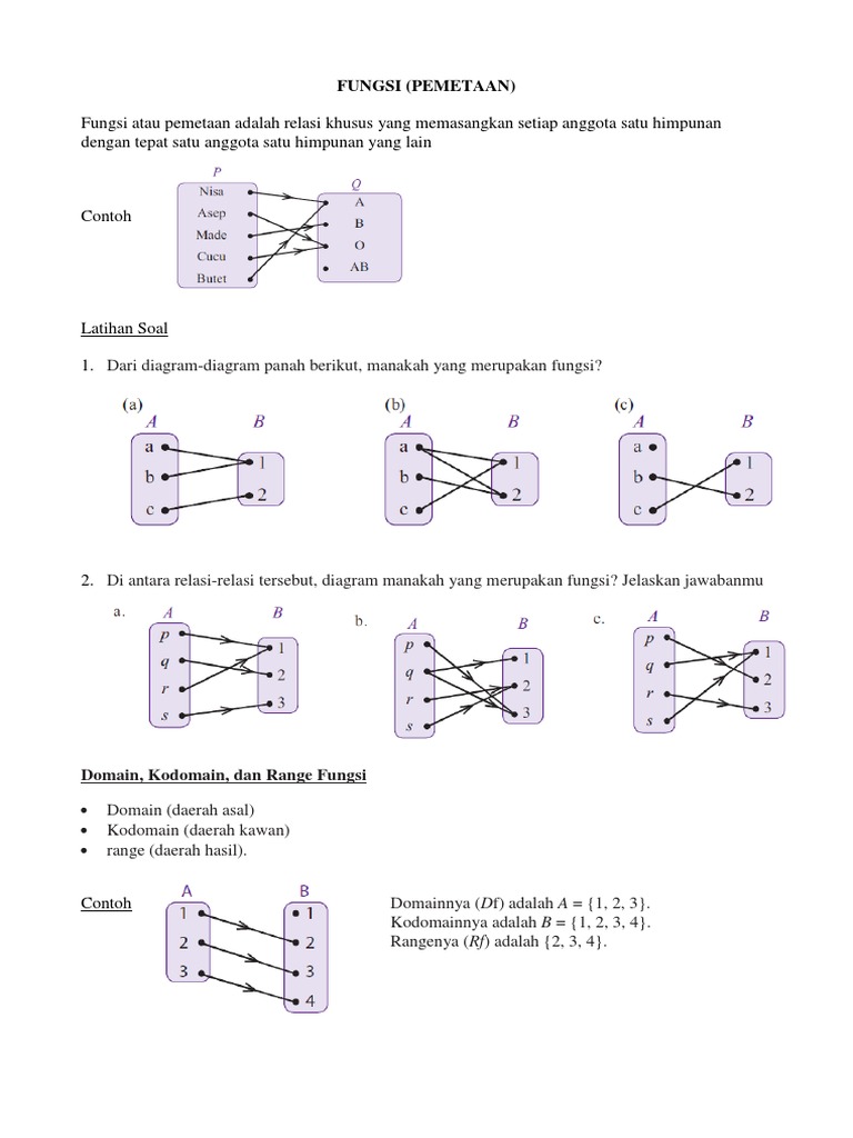 Contoh soal domain kodomain dan range. Istilah ini berbeda pengertiannya dengan kata yang sama yang dipakai sehari hari seperti alatnya berfungsi dengan baikkonsep fungsi adalah salah satu konsep dasar dari matematikadan setiap ilmu kuantitatif. Perhatikan diagram panah berikut ini. Sifat fungsi dalam matematika. Cara mencari domain dan range fungsi. 1 domainnya d f adalah a yunda cici ohta abang 2 kodomainnya adalah b a b o ab 3 rangenya r f. Range yaitu daerah hasil yang merupakan himpunan bagian dari kodomain.