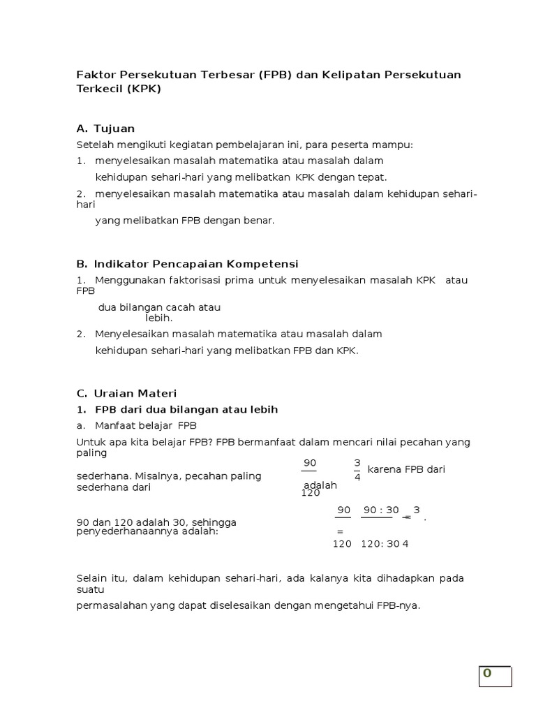 Berikut ini adalah kumpulan berkas file guru tentang contoh soal fpb dan kpk dalam kehidupan sehari hari yang bisa anda unduh secara gratis dengan menekan tombol download. Materi kpk dan fpb disertai contoh soal kpk dan fpb merupakan salah satu materi matematika yang cukup mudah untuk dipelajari karena materi fpb dan kpk merupakan implementasi dari pemfaktoran yang artinya sama juga dengan penjulahan pengurangan perkalian dan pembagian itu sih menurut admin untuk mencari fpb dan kpk yang perlu kalian ketahui sebelumnya yaitu mengenai bilangan prima dan.