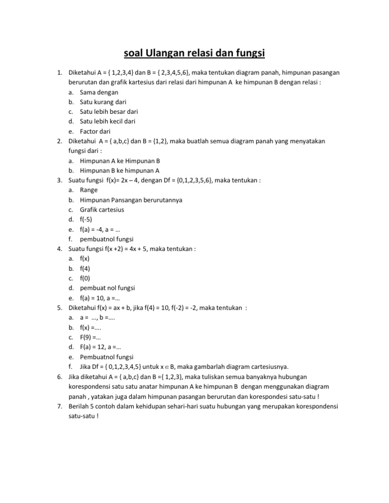 Relasi dan fungsi materi relasi dan fungsi merupakan salah satu dasar kita guna memasuki ke materi yang lainnya seperti limit fungsi turunan dan yang lainnya. Oke langsung aja ke materi intinya. Contoh soal relasi dan fungsi matematika smp 1 hollla sobat idschool pada halaman ini idschool akan mengupas tentang contoh soal relasi dan fungsi matematika smp. Buatlah relasi ke bentuk himpunan pasangan berurutan. Perhaps searching can help. Materi di atas sudah cukup jelas bukan.