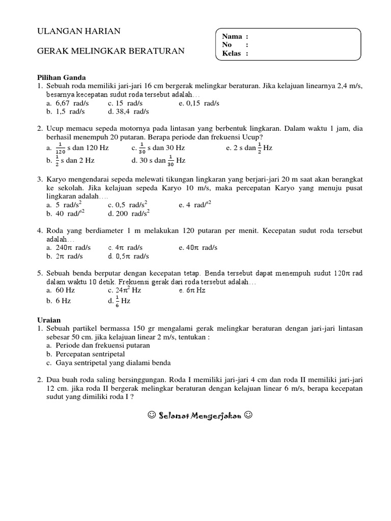Modul Rumus Amp Soal Gerak Melingkar Beraturan Wardaya College
