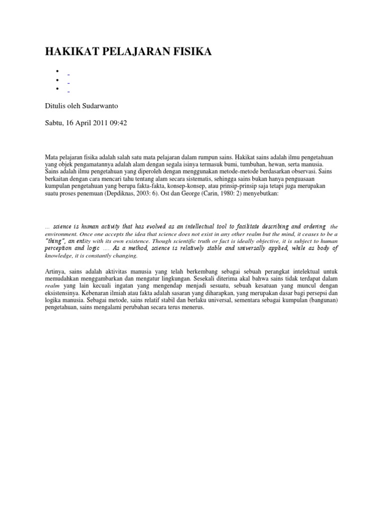 Sebutkan 3 hakikat fisika. Soal dan pembahasan tentang metode ilmiah 1. 3 hakikat fisika yaitu. Dalam rangka pemenuhan kebutuhan manusia terjadi interaksi antara manusia dan lingkungannya.