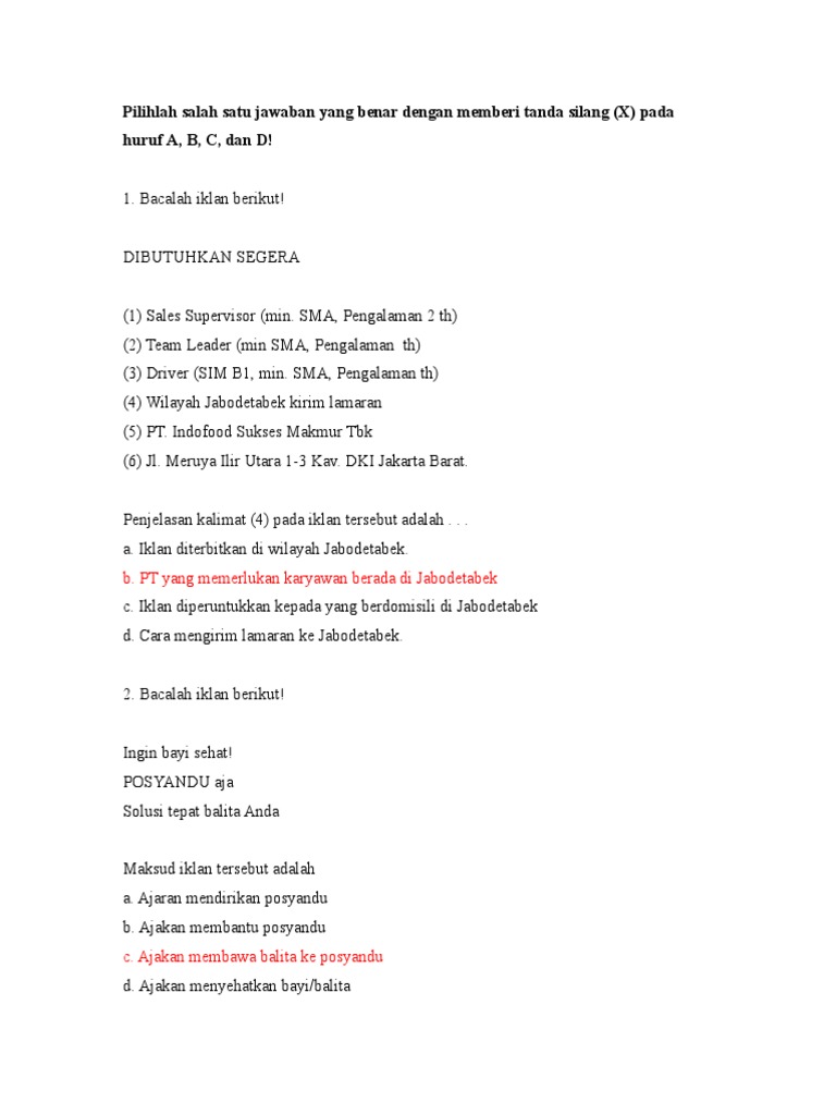 Advertisement adalah teks iklan dan menjadi salah satu functional text yang dipelajari di sekolah menengah. Bahasa cerpen ciri ciri teks contoh soal un dongeng drama fakta dan pendapat iklan imbuhan kalimat majemuk kamus karya ilmiah kelas ix kelas vii kelas viii kisi kisi un kurikulum 2013 majas materi sma materi soal un musikalisasi puisi novel pantun pidato poster prediksi un sastra siap ujian siap ujian sma sinopsis skkd sd skkd smasmkmamak slogan soal ejaan surat syair tajuk teks anekdot. Inilah contoh soal teks advertisement beserta jawabannya dalam bahasa inggrisada beberapa topik iklan dalam belajar bahasa inggris ini diantranya job vacancies goods dan services. Pasar terminal halte stasiun tempat wisata bandara dan lain lain. Pada kesempatan kali ini kakak ingin membagikan kumpulan soal soal pilihan ganda bahasa indonesia tentang teks iklan dan kunci jawabannya kelas 12. Berikut ini disajikan soal pilihan ganda tentang iklan atau contoh soal iklan baris beserta jawabannya.