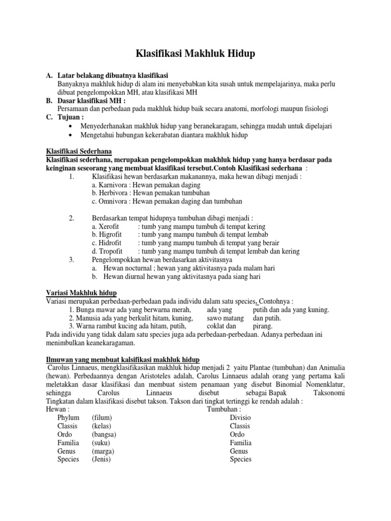 Sistem empat kingdom disusun setelah ditemukannya mikroskop elektron sehingga dapat diketahui lebih dalam tentang struktur sel. Dapatkan contoh soal mengenai bab klasifikasi makhluk hidup untuk tingkat smp dilengkapi dengan pembahasannya disini. Kata kedua sebagai penunjuk spesies dan diawali dengan huruf kapital c. Organon berarti alat merupakan kumpulan molekul molekul yang saling memengaruhi sedemikian sehingga berfungsi secara stabil dan memiliki sifat hidup. Hidup sebagai saprofit jawaban. Klasifikasi makhluk hidup pada postingan kali ini saya ingin membagi atau menshare contoh soal ulangan harian ipa klasifikasi makhluk hidup mungkin ini akan sedikit membantu tugas para guru untuk mengukur kemampuan anak didiknya terlebih dalam memahami materi ipa untuk tigkat smp yaitu tentang bab klasifikasi makhluk hidup.