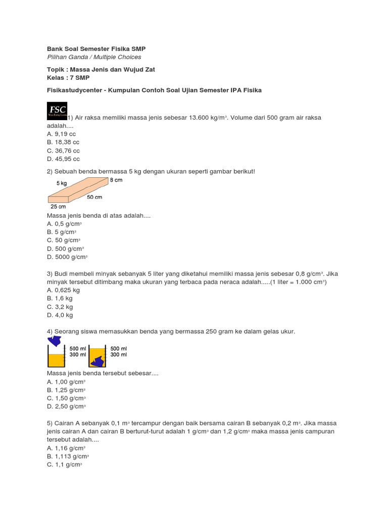 Contoh Soal Essay Massa Jenis Dan Pembahasannya Apipah Com