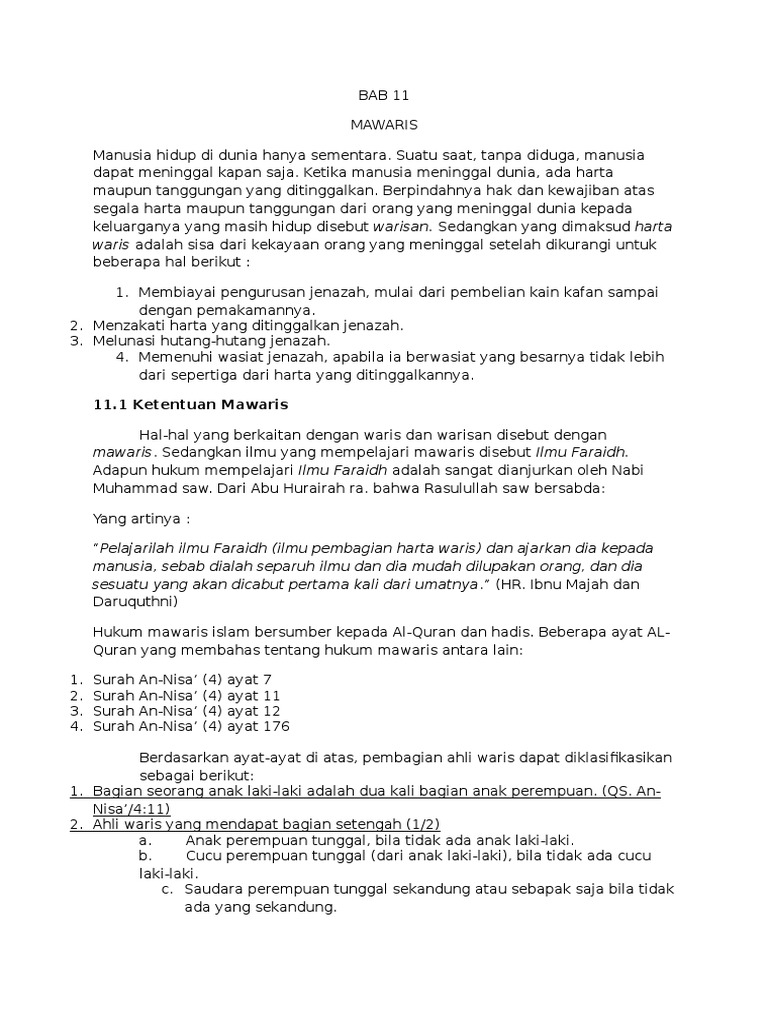 Apakah pengertian ilmu mawaris itu. Contoh soal pilihan ganda mawaris dan jawabannya. Pada kesempatan kali ini kakak ingin membagikan kumpulan soal soal pilihan ganda bahasa indonesia tentang teks prosedur kelas 71112 dan kunci jawabannya. Ahli waris dari laki laki tersebut adalah. Saudara perempuan jika tidak ada ayah dan anak laki laki ii. Assbapakibu saya ada masalah soal warisanayah saya meninggal dunia dan meninggalkn ahli waris ibu 2 anak laki2 dan 3 anak perempuan.