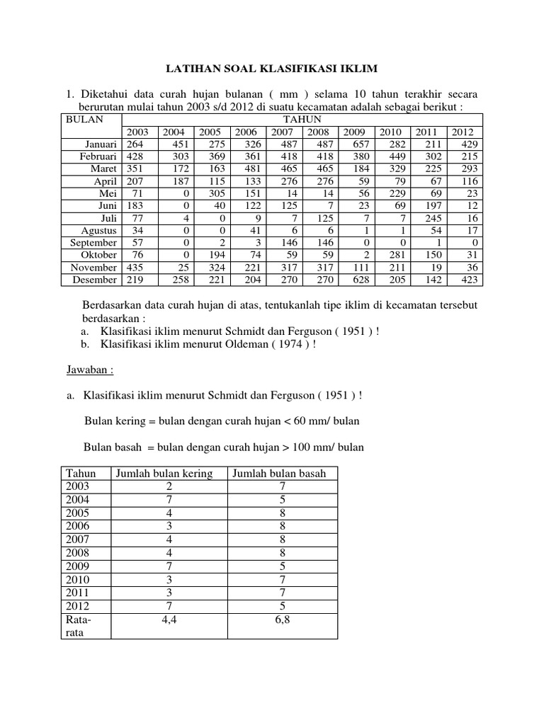 Portal Geografi Contoh Perhitungan Tipe Iklim Schmidt