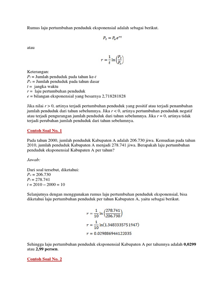 Banyak penduduk kota a setiap tahun meningkat 2 secara eksponensial dari tahun sebelumnya. Dari data tersebut hitunglah. Pertumbuhan penduduk rumus faktor dampak contoh soal contents hide 1 pertumbuhan penduduk rumus faktor dampak contoh soal 11 pengertian pertumbuhan penduduk 12 faktor pertumbuhan penduduk 121 1 kematian atau mortalitas 122 2 kelahiran atau fertilitas 123 3 migrasi 13 dampak pertumbuhan penduduk 131 dampak positif pertumbuhan penduduk 132 dampak negatif. Pertumbuhan penduduk apa yang dimaksud dengan pertumbuhan penduduk. Jika anda menghendaki jenis soal lain seperti uraian atau essay silahkan buka daftar soal geografi pada menu web kami. Pertumbuhan penduduk teori faktor alami total dampak pengertian mengimbangi.