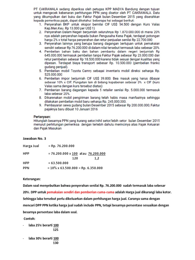 Pengimpor c melakukan impor bkp dari luar daerah pabean dengan nilai impor rp15000000. Contoh soal ppn dan pembahasan pt. Hehe ane iseng iseng nyari juga tu 7017543859 darimana dan akhirnya dapet hehe dari total pajak masukan dikali total penjualan yang kena ppn yang 600juta ditambah 900 juta doang dibagi total seluruh penjualan 1. Ppn kurang bayar 187360000 104542400 rp. Itulah tadi contoh jurnal pajak pertambahan nilai ppn masukan dan keluaran. 8 alasan mengapa pajak masukan tidak dapat dikreditkan.