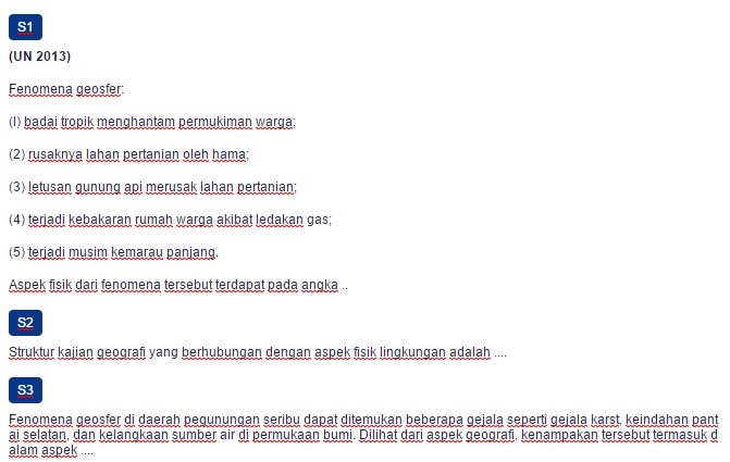 Dalam soal un saya menemukan bahwa jawaban relatif hanya antara 3 yaitu penyebaran interelasi dan deskripsi. Contoh soal geografi secara harafiah geografi diartikan sebagai ilmu yang melukiskan keadaan bumi. Prinsip persebaran untuk menelaah persebaran fenomena geografi di permukaan bumi. Unsur unsur yang dipelajari dalam geografi mencakup unsur unsur yang menggambarkan dan menerangkan fenomena alam dan manusia sehingga bisa diperoleh suatu kesimpulan terhadap hubungan antar fenomena itu sendiri. Prinsip geografi prinsip menjadi dasar dalam melakukan copi uraian pengungkapan dan penyajian gejala variabel faktor dan masalah geografi dalam fenomena geosfer. Prinsip geografi geografi merupakan ilmu yang mempelajari fenomena fisik dan manusia di atas bumiterdapat banyak cabang dan ruang lingkup geografi berdasarkan bidang dan aspek tertentu.