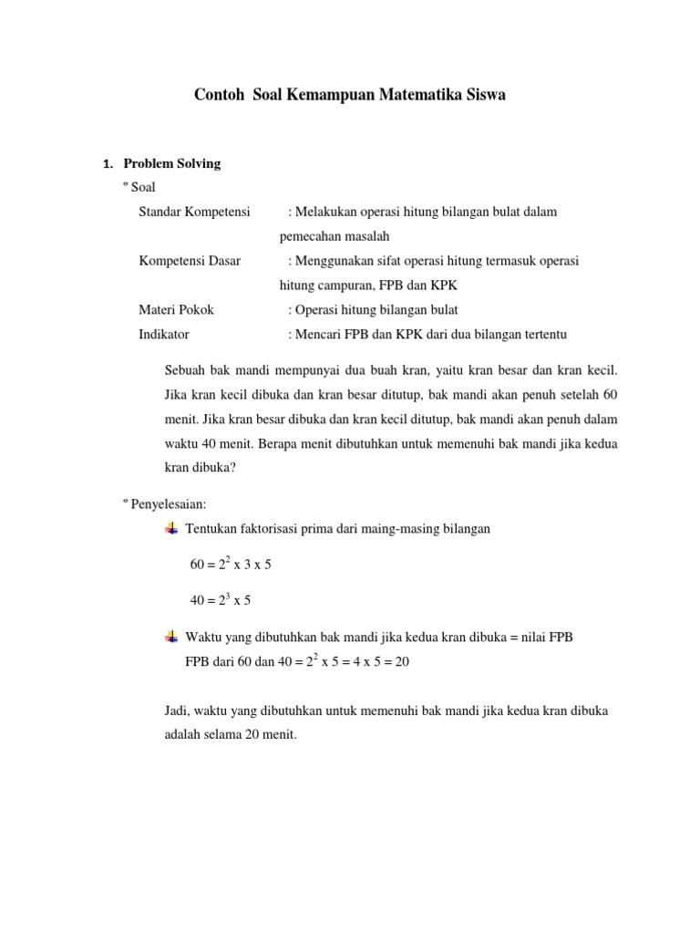 Contoh soal problem solving. Contoh soal problem solving dengan strategi intelligent guessing and testing free download contoh soal problem solving dengan. Semoga dapat bermanfaat bagi para siswa untuk belajar soal soal problem solving. Guru sd smp sma contoh soal problem solving matematika sd. Contoh soal tipe tipe problem solving untuk kelas 1 a. Yang bisa digunakan untuk melengkapi administarsi guru yang dapat di unduh secara gratis dengan menekan tombol download. Soal soal problem solving penyelesaiannya hyronimus lado spd maret 2014 mathematics for elementary teachers a contemporary approach gary l.