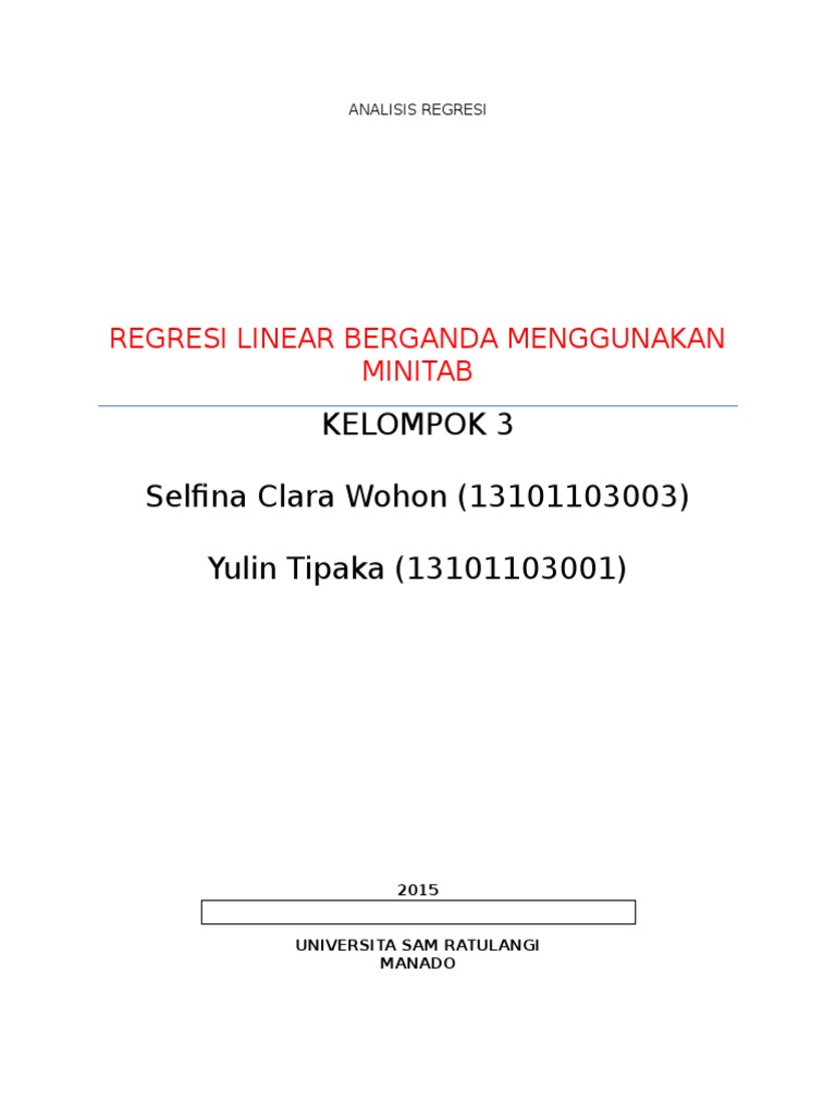 Contoh soal regresi linear sederhana. Hasil analisis interpretasi hasil. Regresi linier sederhana adalah suatu metode yang digunakan untuk melihat bentuk hubungan antar satu variabel independent bebas dan mempunyai hubungan garis lurus dengan variabel dependennya terikat. Analisis regresi linear sederhana regresi linear sederhana adalah metode statistik yang berfungsi untuk menguji sejauh mana hubungan sebab akibat antara variabel faktor penyebab x terhadap variabel akibatnyafaktor penyebab pada umumnya dilambangkan dengan x atau disebut juga dengan predictor sedangkan variabel akibat dilambangkan dengan y atau disebut juga dengan response. Contoh soal regresi dan korelasi sederhana. Ada yang salahkah saya ambil dari 35 responden dengan 30 soal. Dengan mengacu hasil nilai y pada perhitungan regresi linier maka prediksi jumlah waktu yang dibutuhkan pengiriman jasa laundry 1458 menit ditambah 435 kali jarak pelanggan.