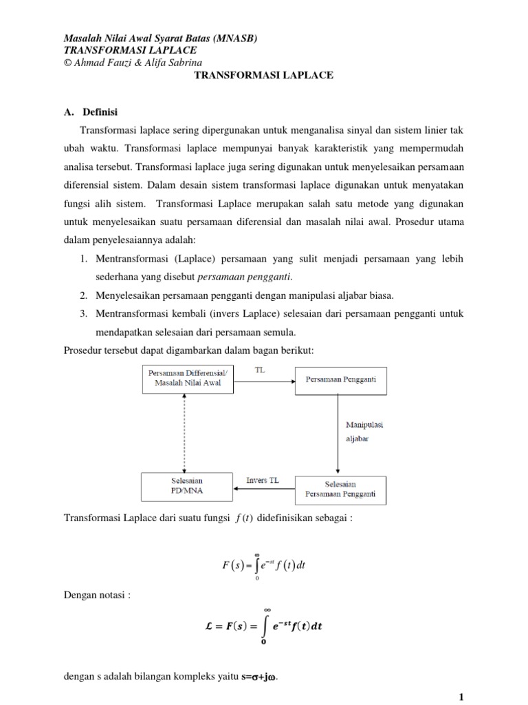 Suatu kelebihan metode transformasi lapalace adalah bahwa metode ini memungkinkan penggunaan teknik grafis untuk meramal kinerja sistem tanpa. Contoh soal transformasi laplace persamaan diferensial. Turunan integral persamaan diferensial dan transformasi laplace dalam penerapannya di bidang teknik elektro. Review definisi dasar fungsi variabel turunanderivatif beberapa aturan pada operasi turunan latihan soal. Contoh soal cerita iv. Persamaan diferensial linear orde 1 ciri ciri sifat linearitas pada persamaan diferensial persamaan diferensial eksak.