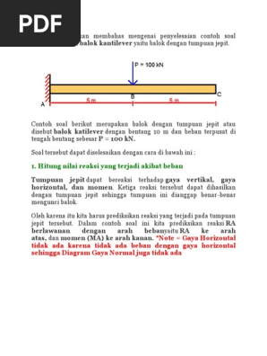Contoh Soal Mekanika Teknik Balok Kantilever Tumpuan Jepit