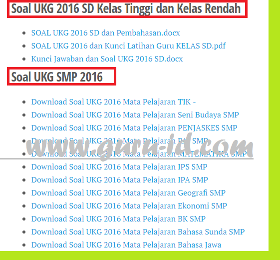 Soal soal latihan ukg 2015 dan kunci jawabannya. Soal soal latihan ukg 2015 dan kunci jawabannya untuk guru jenjang sd sesuai kisi kisi ukg 2015 yang dirilis kemendikbud ada tiga mata pelajaran mapel ukg yaitu guru sd kelas rendah guru sd kelas tinggi dan guru penjaskes sd. Soal ini merupakan kumpulan dari soal ukg kelas rendah 2017 yang kami kumpulkan sedikit demi sedikit untuk bisa dipelajari anda semua. Dengan kisi kisi ini dapat memberi gambaran kepada peserta ukg 2015 tentang soal soal yang akan di ujikan. Cukup banyak link yang membagikan kisi kisi contoh soal hingga materi ukg di internet yang dapat bapak ibu guru pelajari. Dengan kisi kisi ini dapat memberi gambaran kepada peserta ukg 2015 tentang soal soal yang akan di ujikan.