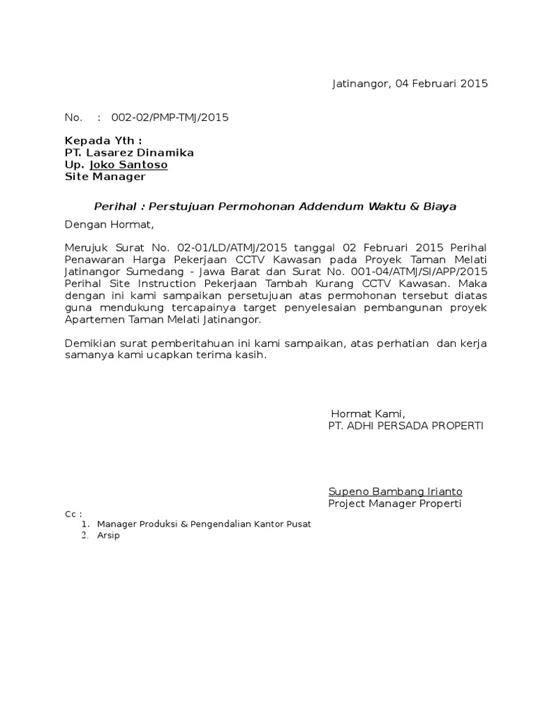 Adendum akibat perubahan lingkup pekerjaan contract change order atau sering disebut adendum tambahkurang yang terbagi menjadi 4 empat jenis perlakuan yaitu. Surat permohonan pekerjaan tambah kurang contoh surat addendum pekerjaan suratmenyuratnet. If youre attempting to lose kilograms then you absolutely need to jump on this brand new personalized keto diet. Adanya pekerjaan tambah kurang cco b. Contoh isi pasal pekerjaan tambah atau kurang proyek bangunan. Adendum tambahkurang nilai kontrak bertambah.