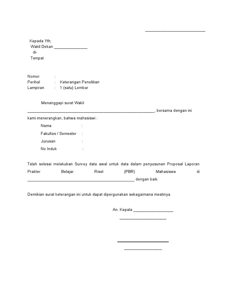 Kemudian setelah melakukan penelitian tersebut maka diperlukanlah surat keterangan penelitian yang nantinya akan di cantumkan di dalam skripsi kita. Contoh surat permohonan penelitian skripsi merupakan salah satu contoh surat permohonan penelitian yang dapat digunakan sebagai pengantar mahasiswa untuk melakukan penelitian. Contoh surat balasan penelitian saat ini anda lagi melakukan studi untuk melakukan penelitian maka kami berikan ini supaya anda bisa memberikan balasan untuk penelitian sehingga anda memilik toko bisa memberikan surat balasan untuk kepala jurusan supaya untuk studi ini layak untuk diteruskan penelitiannya. Contoh surat balasan izin penelitian skripsi dari sekolah via wwwneodv8co contoh perusahaan firma di yogyakarta mathieu comp. Contoh surat balasan penelitian browse home contoh surat balasan penelitian pemerintah kabupaten daerah tingkat ii jepara. Dan skripsi tersebut harus didasarkan penelitian atau pengamatan yang dilakukan pada suatu tempat tertentu seperti perusahaan instansi ataupun suatu lembaga.
