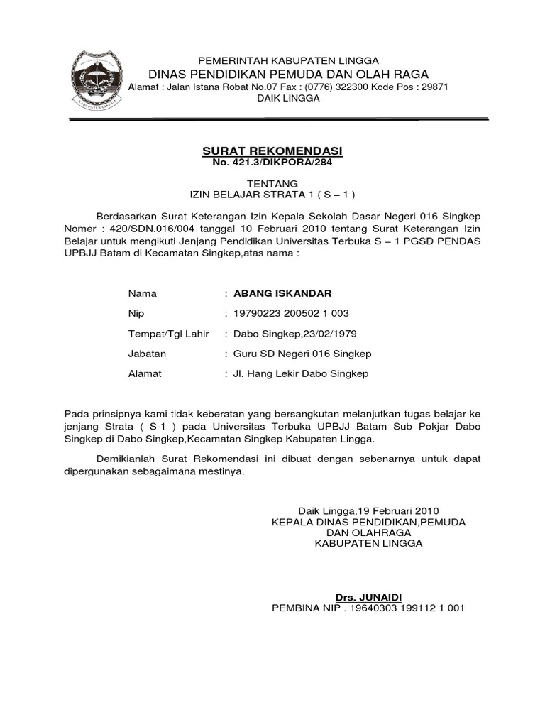 Contoh surat ijin belajar. Melanjutkan surat permohonan ijin belajar an slamet mugiyono nip. 19690619 199403 1 006 tanggal 23 agustus 2012 dimana tembusannya sudah disampaikan kepada kepala dinas kesehatan kabupaten jember maka dengan ini saya sampaikan kepada kepala dinas kesehatan kab. Biasanya surat izin belajar ini mereka yang sudah menjadi pegawai negeri sipil pns namun masih memiliki ijazah terakhir sma dan harus atau diwajibkan untuk menuntaskan ke jenjang s1. Sindangraja 28 februari 2009. Jamanis surat ijin belajar nomor. Contoh surat permohonan izin belajar.
