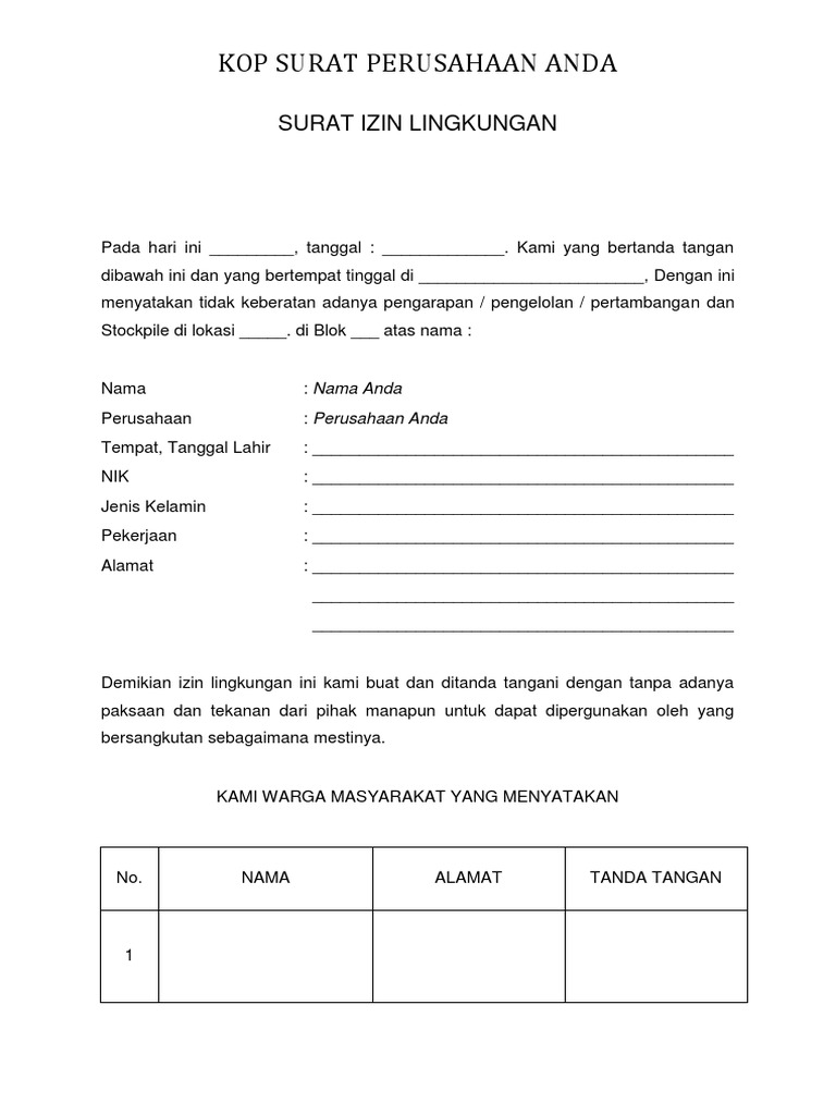 Simpan simpan contoh surat izin lingkungan untuk nanti. 11 11 mendukung tandai dokumen ini sebagai bermanfaat 0 0 menolak tandai dokumen ini sebagai tidak bermanfaat tanamkan.