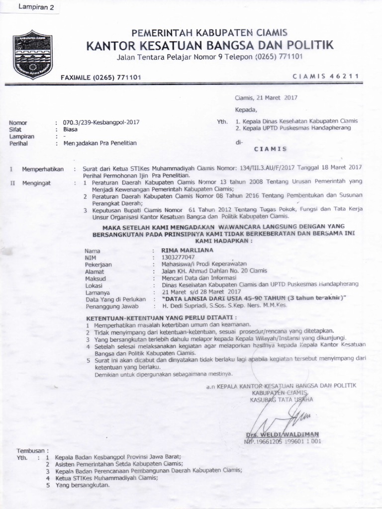 Contoh surat izin penelitian ke kesbangpol. Memberitahukan ke instansi yang diperlukandituju dan aparat wilayah yang lokasinya dijadikan tempat penelitian. Menyampaikan hasil penelitian paling lama 1 satu bulan setelah waktu berlakunya surat izin berakhir kepada. Indonesia harus memperoleh surat izin penelitian sip dari menteri negara riset dan teknologi. Surat permohonan ini dibuat oleh pihak universitaskampus jika lingkup kampus yang luas surat ini akan dikeluarkan oleh bagian jurusanprogram studi namun pada kasus kasus tertentu surat ini sikeluarkan oleh bagian. Pemegang izin yang telah memperoleh surat izin penelitian diwajibkan. Buku pedoman prosedur izin penelitian bagi perguruan tinggi.