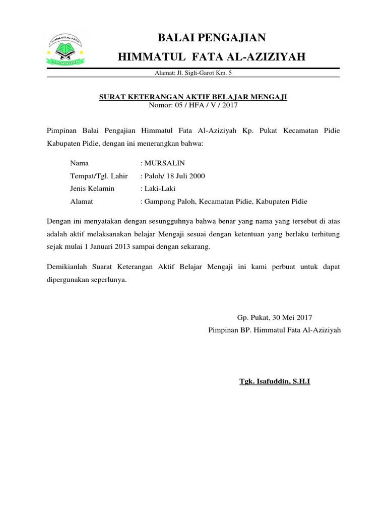 Contoh surat keterangan aktif mengajar surat keterangan aktif mengajar adalah sebuah surat yang dikeluarkan oleh sekolah dan ditandatangani oleh kepala sekolah yang menerangkan seseorang guru tersebut masih aktif mengajar di sekolah tersebut. Surat keterangan siswa aktif. Contoh surat keterangan aktif belajar pemerintah kabupaten serang. Yang bertanda tangan dibawah ini. Surat ini biasanya diperlukan untuk mengajukan beasiswa tunjangan gaji mendaftar di asuransi dan lain lain. 442 ffd risdn 3 rm i 2017.