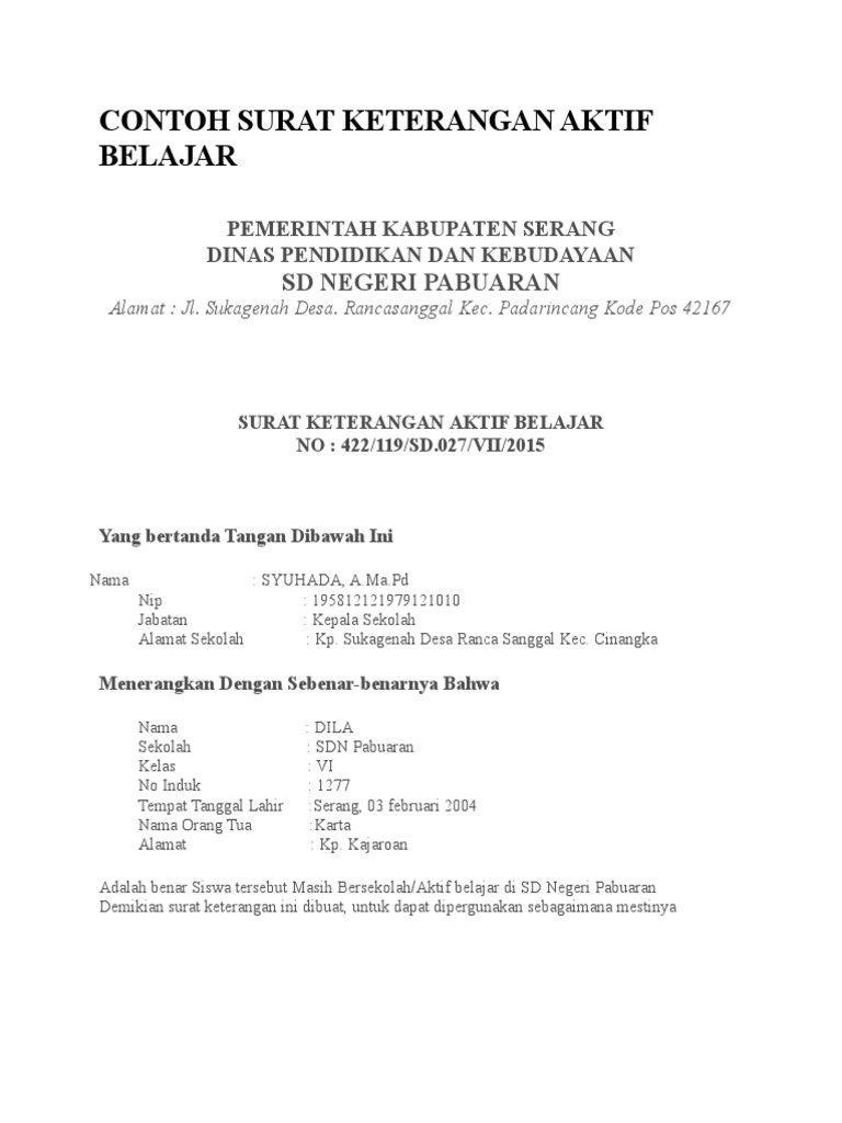 Contoh surat keterangan siswa aktif. Apa itu surat keterangan siswa. Salam library pendidikan surat keterangan siswa aktif ini merupakan surat yang menerangkan bahwa siswapeserta didik dimaksud memang benar benar siswa yang sekolah dalam artian terdaftar sampai sekarang. Mataram 17 maret 2009 an kepala sekolah wakasek kesiswaan wawan gunawan spd nip. Nah di awal tahun ajaran baru ini biasanya banyak orangtua siswa yang datang ke sekolah untuk minta dibuatkan surat keterangan siswa. Demikian surat keterangan ini di buat untuk dapat dipergunakan sebagaimana mestinya. Surat keterangan ini adalah surat resmi yang diterbitkan sekolah dan ditandatangani kepala sekolah.
