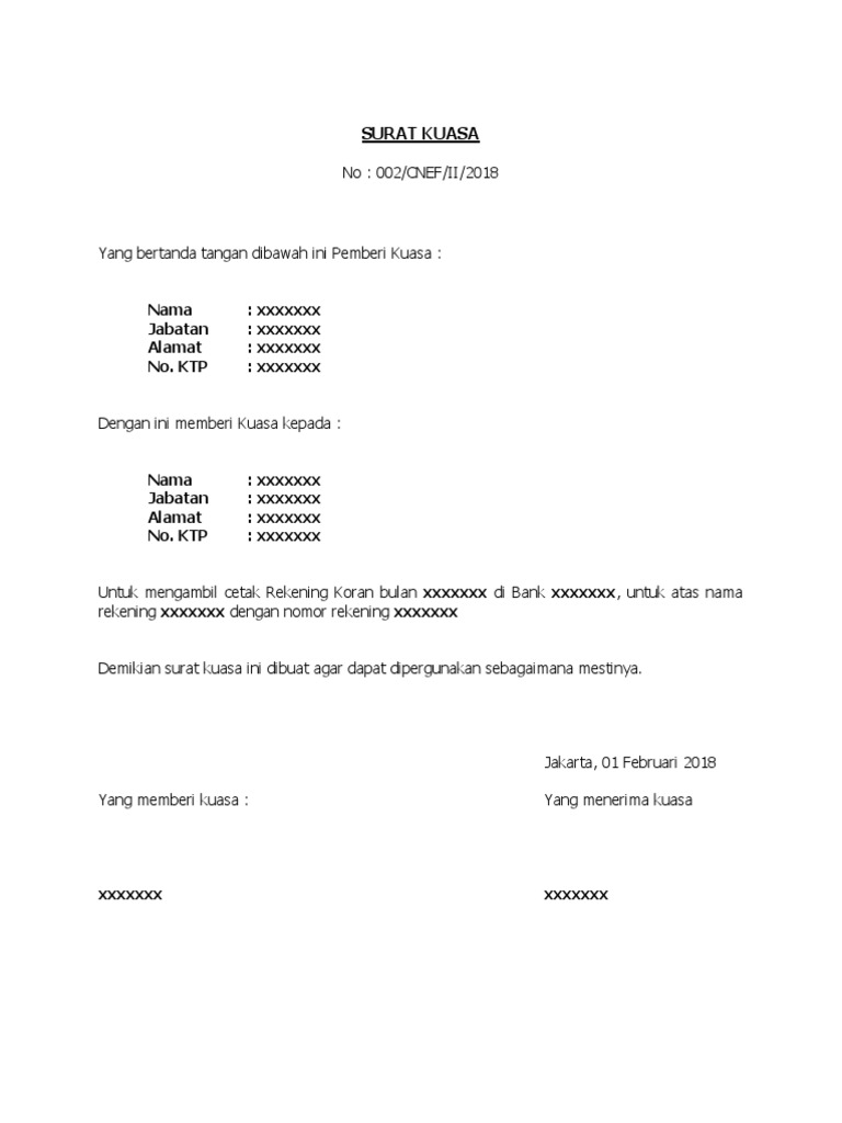 15 contoh surat kuasa terlengkap untuk berbagai keperluan surat kuasa adalah surat yang berisikan penyerahan kuasa ataupun wewenang kepada seseorang yang dapat dipercaya untuk melakukan sesuatu hal. Penerima kuasa dimana perlu untuk itu berhak dan berwenang mewakili pemberi kuasa untuk melakukan segala tindakan yang diperlukan termasuk namun tidak terbatas pada. Contoh surat kuasa pengambilan uang di bank mari kita lanjutkan pembahasan kita seputar dunia surat menyurat. Contoh diatas merupakan contoh membuat surat kuasa untuk pengambilan gaji. Contoh surat kuasa yang akan kita bahas pada artikel kali ini bukan saja hanya sebatas contoh surat kuasa melainkan begaimana cara membuat format surat kuasa yang benar untuk referensi bagi anda yang sedang membuat surat kuasa. Surat kuasa non formal merupakan surat kuasa yang tidak perlu mengunakan materai cukup identitas dan nama jelas pemberi kuasa dan penerima kuasa.