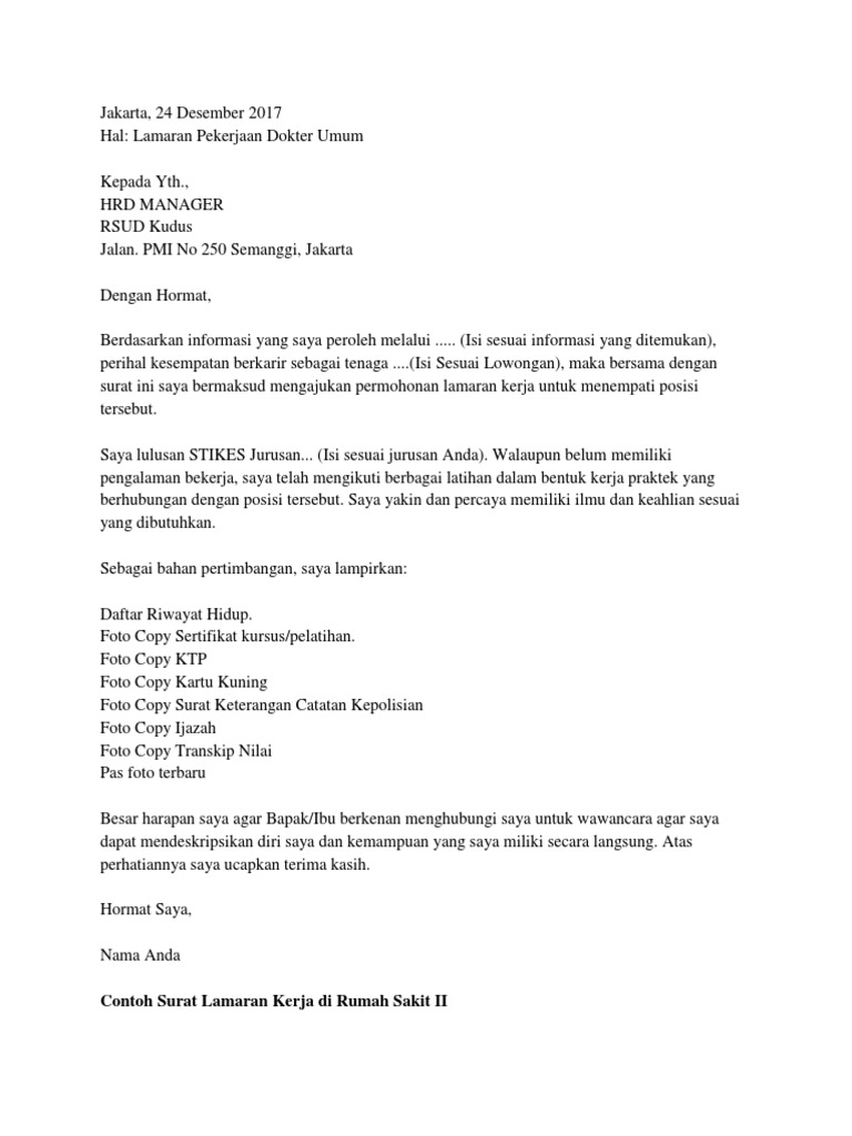 Contoh surat lamaran kerja pada artikel ini kita akan membahas contoh surat lamaran pekerjaan yang dapat kamu dapatkan beserta file doc nya. Mungkin terdapat jutaan artikel di internet yang menyediakan panduan bagaimana cara membuat surat lamaran pekerjaan yang disertai contoh surat lamaran pekerjaan baik itu surat lamaran kerja untuk melamar ke perusahaan maupun surat lamaran pekerjaan. Surat lamaran kerja adalah surat yang digunakan untuk melakukan permohonan mendapatkan pekerjaan sesuai pengalaman pada perusahaan tertentu. Contoh surat lamaran kerja semua profesi terbaru 2017pada kesempatan kali ini blog contoh surat akan share mengenai surat lamaran pekerjaan yang telah menjadi kebutuhan dan kunci awal para pencari kerja dalam mendapatkan posisi yang diharapkannya. Yap sama seperti judul besar yang tertera di atasadapun tujuan dari penulisan contoh surat lamaran pekerjaan ini dibuat adalah agar bisa menjadi panduan dan referensi kamu sebelum mengajukan surat lamaran pekerjaan. Pada tulisan ini akan kami berikan contoh contoh surat melamar kerja dari berbagai profesi seperti guru staff pt bank administrasi akuntansi.