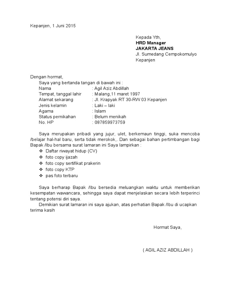 Oktober 1 september 3 mengenai saya. 15 contoh surat lamaran kerja berdasarkan iklan paling lengkap salah satu sumber informasi tentang lowongan pekerjaan adalah melalui iklan. Surat lamaran kerja atas inisiatif sendiri adalah sebuah suarat lamaran kerja yang bisa ditujukan ke perusahaan mana saja sebab surat tersebut bersifat universal. Contoh surat lamaran pekerjaan berdasarkan inisiatif sendiri malangbong 20 januari 2015 hal. Secara garis besar surat lamaran kerja terbagi menjadi dua macam yaitu surat lamaran kerja berdasarkan iklan dan surat lamaran kerja berdasarkan inisiatif sendiri. Surat lamaran kerja yang bermodel seperti ini biasanya adalah hasil dari kreativitas seseorang yang sangat menginginkan sebuah pekerjaan.