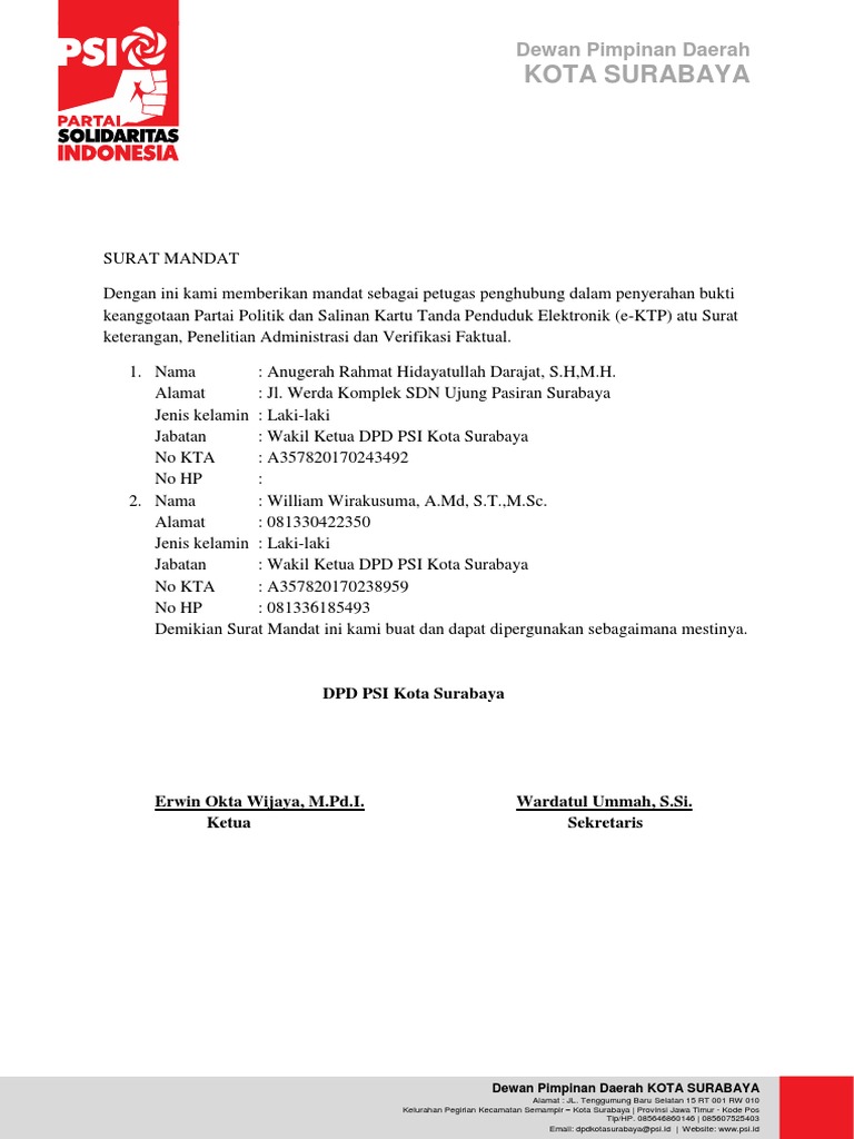 Tetapi kalau kegiatan partai menganggu pekerjaan atau anda merasa tidak nyaman mungkin mengundurkan diri dari partai jadi satu satunya pilihan. Surat keterangan autentifikasi hasil perolehan kursi didprd kab. Menindak lanjuti surat penetapan pengadilan tata usaha negara nomor. Download contoh surat mandat dengan mengklik link berikut. Foto copy ktp penerima mandat h. Demikian surat mandat ini saya buat dengan sebenar benarnya untuk digunakan seperlunya dan penandatanganan surat mandat ini semua yang bersangkutan dalam keadaan sehat jasmani dan rohani.
