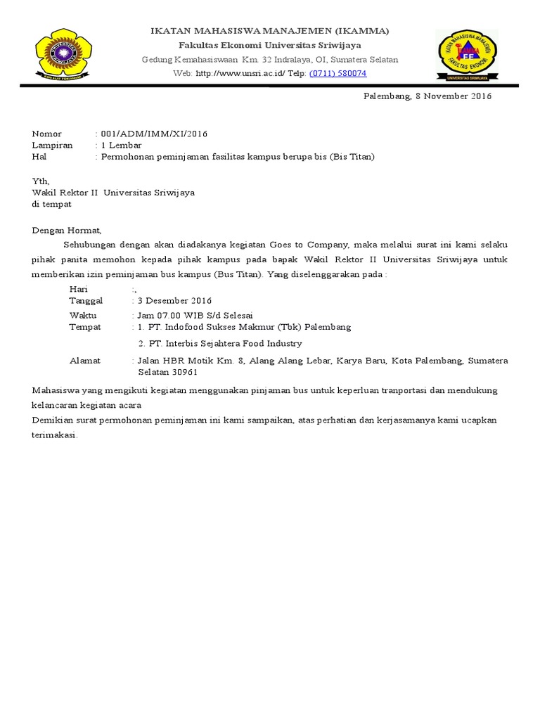 Surat peminjaman tempat contoh surat peminjaman gedung tempat kegiatan pinjam pakai alat kartika bluesky september 19 2019 contoh surat no comments makalahid bagi yang sering menjadi panitia di sebuah event atau bekerja dalam bidang persuratan tak asing dengan surat peminjaman tempat. Semarang 11 november 2012. Kumpulan contoh surat bisnis surat dinas surat izin surat kuasa surat lamaran kerja surat pemberitahuan surat penawaran surat pengunduran diri surat. Perijinan peminjamam bus kampus.
