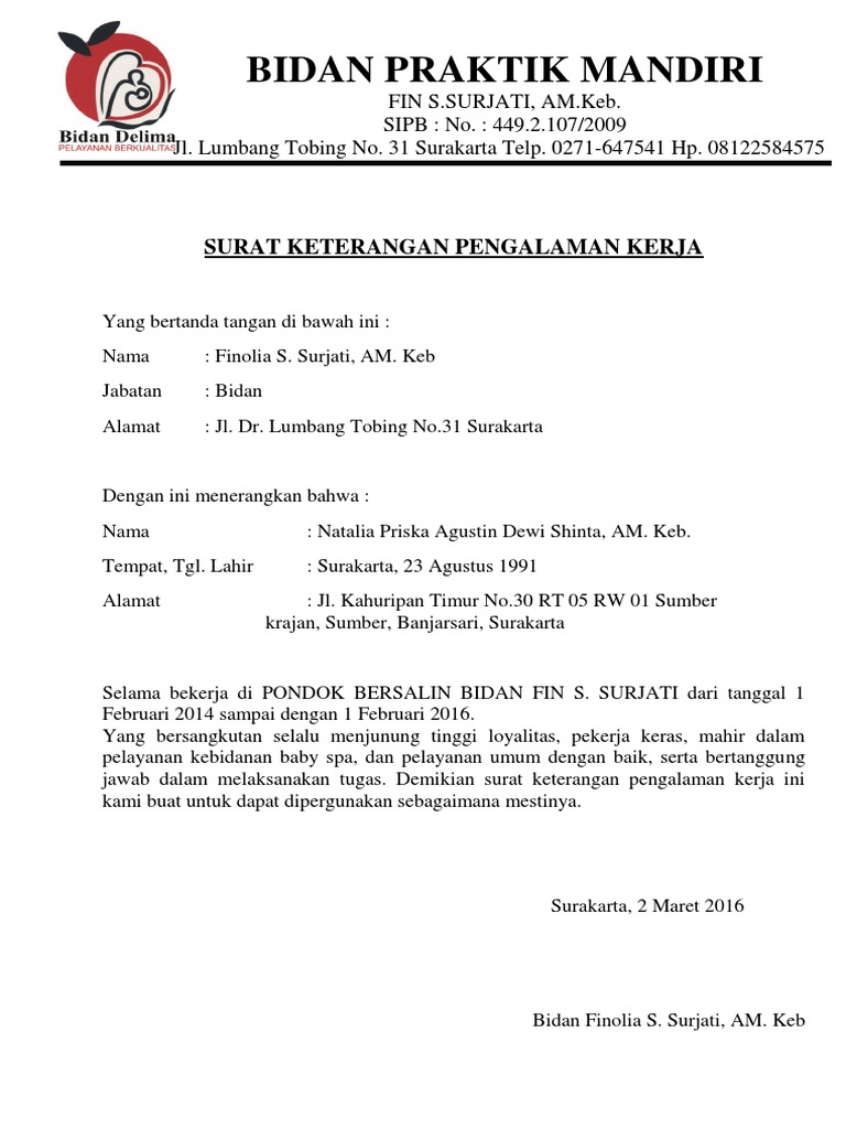 Contoh surat pengalaman kerja bidan. Contoh surat pengalaman kerja bagi seseorang yang sudah pernah bekerja di suatu perusahaan dalam waktu tertentu kemudian berhenti mengundurkan diri sudah bisa mendapatkan surat pengalaman kerja. Menghadapi revolusi industry 40 akan banyak karyawan karyawan yang tersingkir dari jabatan sebelumnya dan akan digantikan dengan teknologi yang lebih canggih. 15 contoh surat pengalaman kerja yang baik dan benar bagi orang yang sedang mencari pekerjaan tentu surat pengalaman kerja merupakan salah satu surat yang sangat dibutuhkan. Sebagian orang memilih untuk membuka usaha sendiri dan mendapatkan penghasilan dari sana. Banyak sekali contoh surat pengalaman kerja yang dapat anda temukan di internet. Surat pengalaman kerja ini berguna sebagai bukti bahwa seseorang itu sudah memiliki pengalaman kerja di bidang tertentu sesuai dengan yang tertera pada surat pengalaman kerja.