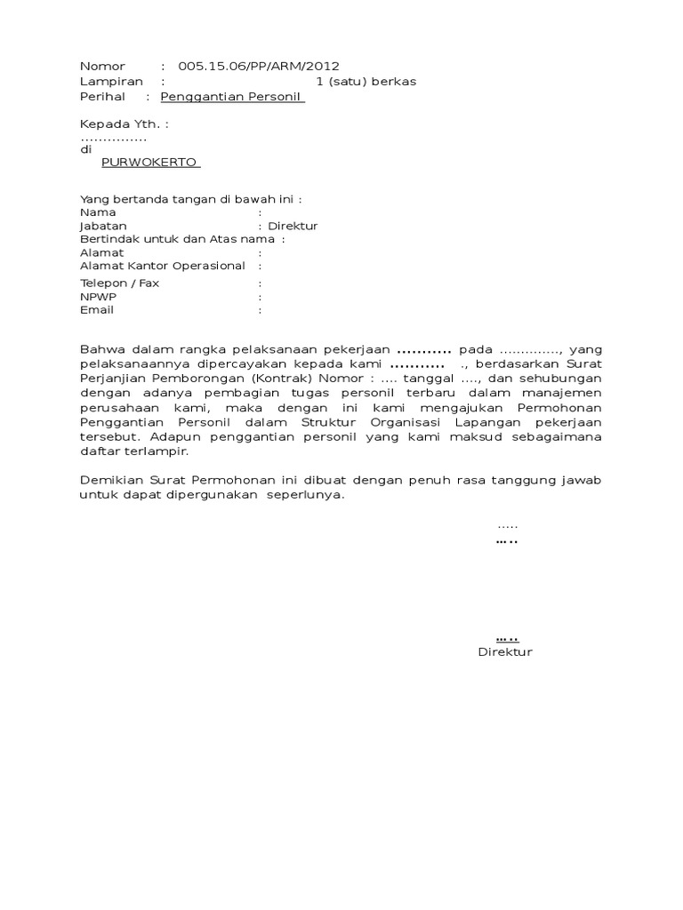 Contoh surat pergantian personil. Lama kerja jam kerja shift work. Kenapa demikian karena surat memiliki bukti fisik dan bisa dijadikan sebagai bahan bukti di kemudian hari. Evaluasi teknis tenaga ahli surat mobilisasi personil. Semoga dapat menjadi bahan referensi dalam membuat surat pernyataan yang baik dan benar. Surabaya 22 maret 2012 kepada yth. Silahkan kunjungi postingan contoh surat keterangan penggantian penanggungjawab teknis perusahaan cv untuk membaca artikel selengkapnya.