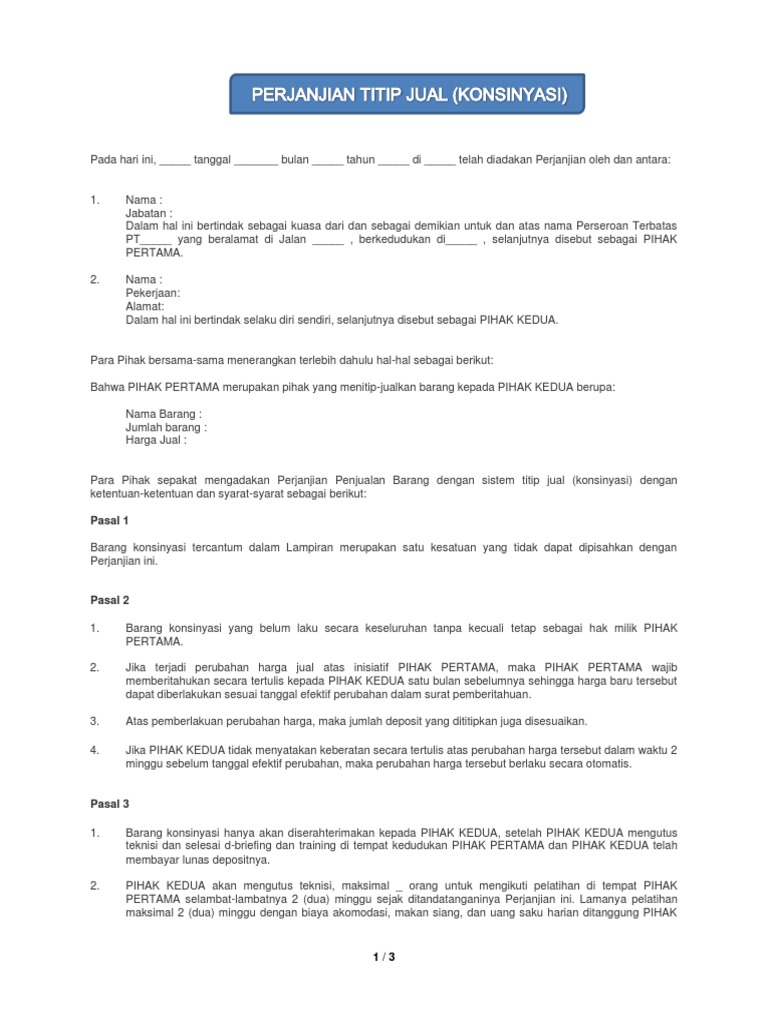 Kedua belah pihak sepakat mengadakan perjanjian jual beli barang dengan sistem titip jual konsinyasi dengan ketentuan dan syarat syarat sebagai berikut. Untuk mendapatkan contoh lain bentuk surat perjanjian yang sesuai dengan kebutuhan anda silahkan lihat contoh surat perjanjian kami yang lain dalam kategori surat perjanjian. Konsinyasi titip jual merupakan bentuk kerjasama penjualan antara pemilik produk dengan penyalur barang yang biasanya berupa toko atau distributor. Thursday november 1 2018 add comment edit. Namun ada banyak lagi surat perjanjian kerja sama yang dapat anda buat sesuai dengan kebutuhan namun agar tidak membahayakan anda sebaiknya anda memenuhi beberapa tips ini. Jadi surat perjanjian konsinyasi adalah surat resmi yang berisi kesepakatan titip jual atau konsinyasi.