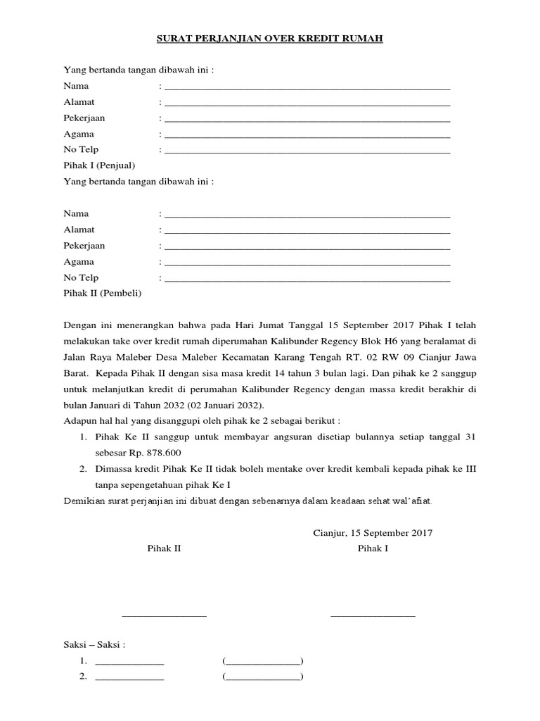 Contoh surat perjanjian over kredit rumah. Berbagi ke twitter berbagi ke facebook bagikan ke pinterest. Artikel ini bisa menjadi referensi anda ketika anda bingung memilih format yang tepat. Cara membuat surat perjanjian over kredit membuat surat perjanjian over kredit sama saja dengan membuat surat perjanjian pada umumnya. Beli credit takeover. The collection that comprising chosen picture and the best among others. Format gambar contoh perjanjian oper kredit rumah yang baik 2019.