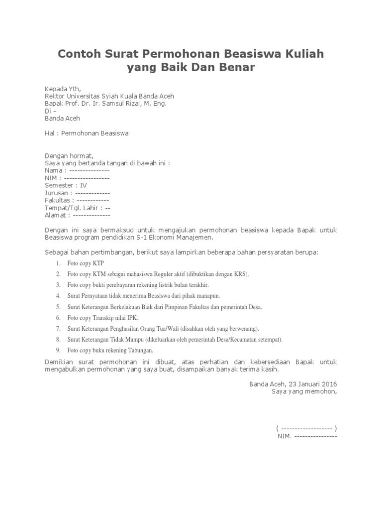 Dengan mengajukan surat permohonan tersebut menunjukab bahwa anda membutuhkan bantuan untuk pendidikan anda berupa bebas biaya baik itu administrasi atau juga hal lainnya asalkan anda menunjukan surat permohonan. Surat permohonan beasiswa kepada rektor posted by. Contoh surat permohonan beasiswa merupakan surat yang isinya meminta beasiswa. Salah satu caranya adalah dengan memberikan beasiswa kepada siswa atau mahasiswa tertentu. Unknown 27 jul 2013 contoh surat permohonan beasiswa kuliah dapat anda ajukan untuk rektor di universitas tempat anda kuliah sekarang ini. Contoh surat permohonan beasiswa.